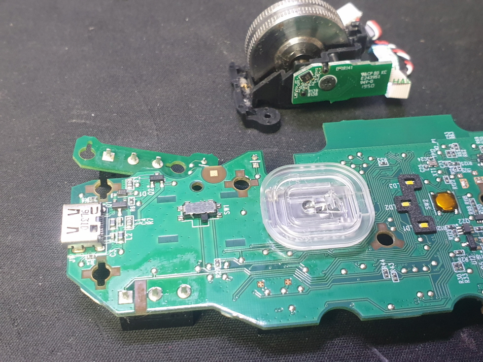 휠센서불량으로 휠센서교체수리 진행합니다. 휠센서불량은 휠팅김, 스크롤시 위아래로 잘 안움직이거나 아예 반응이 없는 경우 발생되는 현상이며 센서교체후 정상적인 사용이 가능합니다.