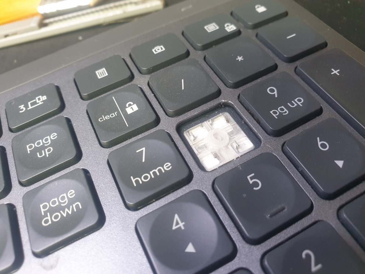 진주시 충무공동에서 우측키패드8 파손 러버돔수리 Logitech MX KEYS 로지텍키보드 펜타그래프 병행수입 직구 사설 수리 고장 AS