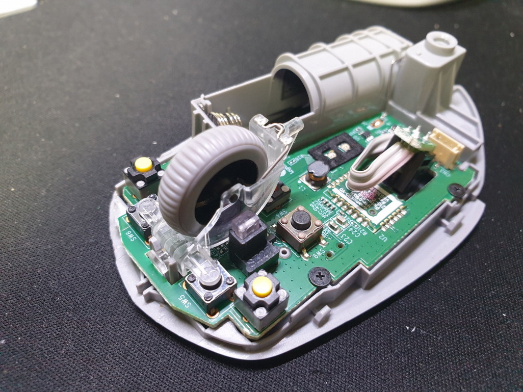 휠센서불량으로 휠센서교체수리 진행합니다. 휠센서불량은 휠팅김, 스크롤시 위아래로 잘 안움직이거나 아예 반응이 없는 경우 발생되는 현상이며 센서교체후 정상적인 사용이 가능합니다.