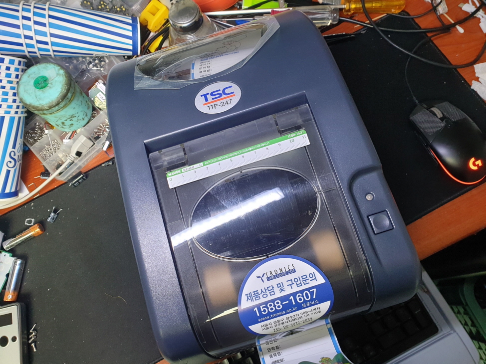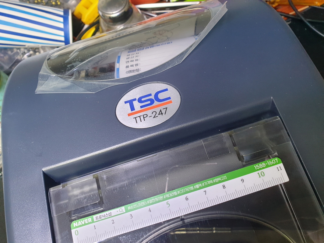 충남 청양군에서 빨간불 점멸 반복후 기계음 1~2초 작동안됨으로 TSC TTP-247 유통 라벨 송장 바코드 프린터수리