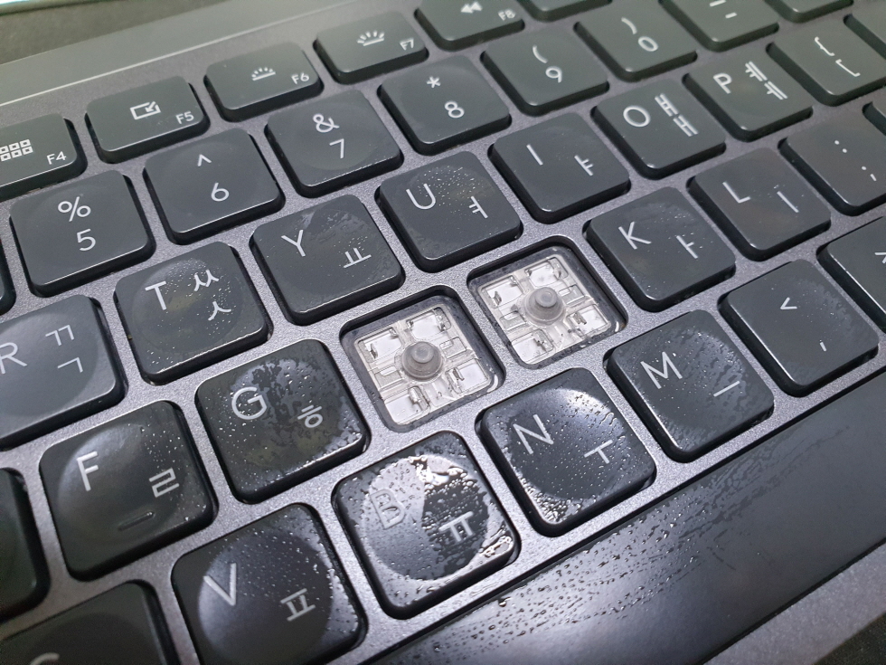 키캡 및 러버돔(고무)에 접착제 사용한 경우 수리가 안되며, 메인보드걸쇠부분이 파손되어 떨어져나가거나 훼손정도가 심한 경우가 아니면 수리가 가능합니다.