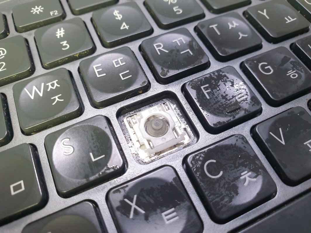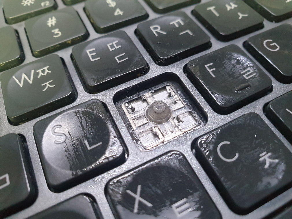 키캡 및 러버돔(고무)에 접착제 사용한 경우 수리가 안되며, 메인보드걸쇠부분이 파손되어 떨어져나가거나 훼손정도가 심한 경우가 아니면 수리가 가능합니다.