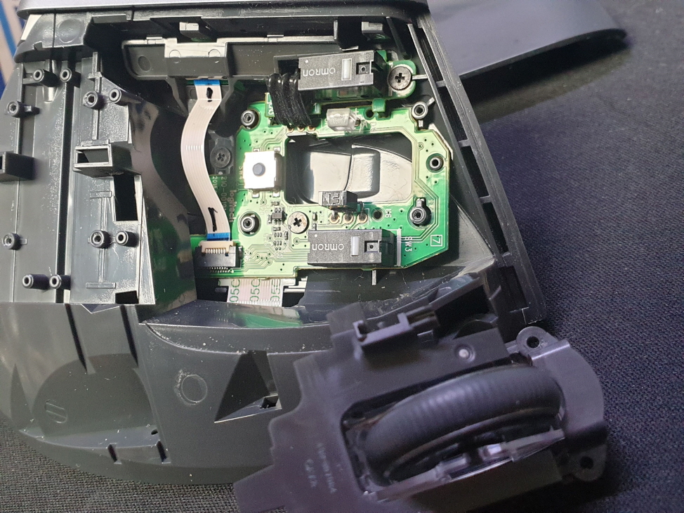 왼쪽버튼 드래그풀리고 더블클릭 증상인 버튼내 스위치불량으로 새 스위치 D2FC-F-7N(100M) 좌우교체 수리 진행합니다.