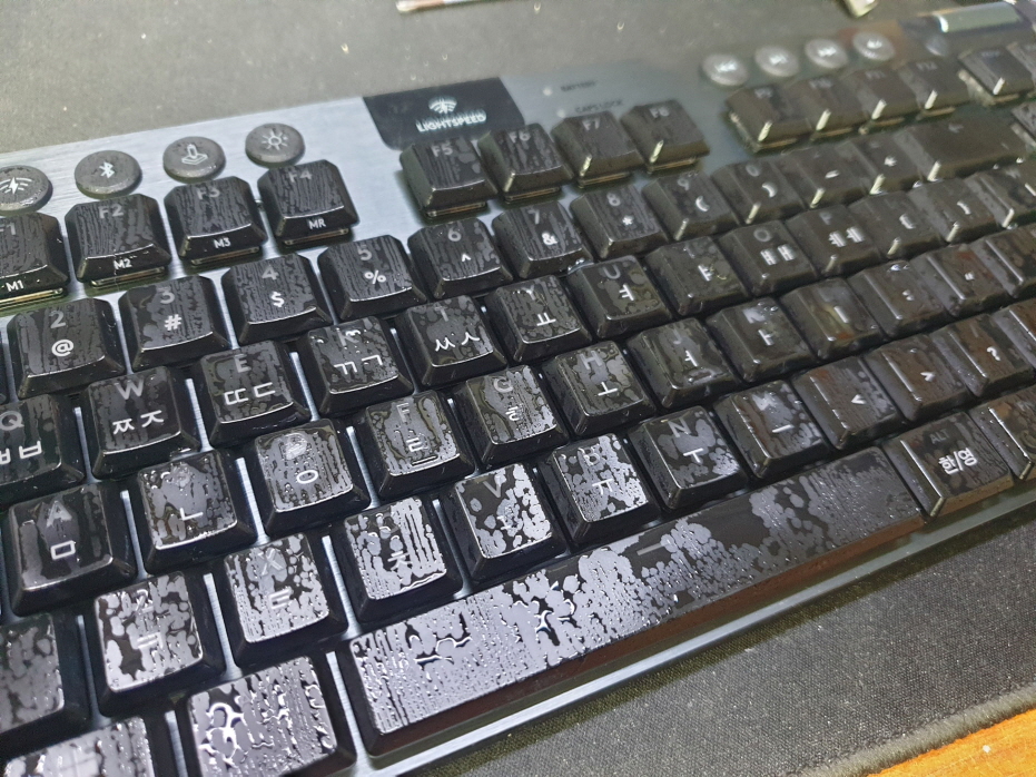 하남시 망월동에서 차를 쏟아 자판 눌러지는게 좀 안되는것같음으로 Logitech G913 TKL YR0076 로지텍 키보드 해외직구 사설 수리 고장 AS