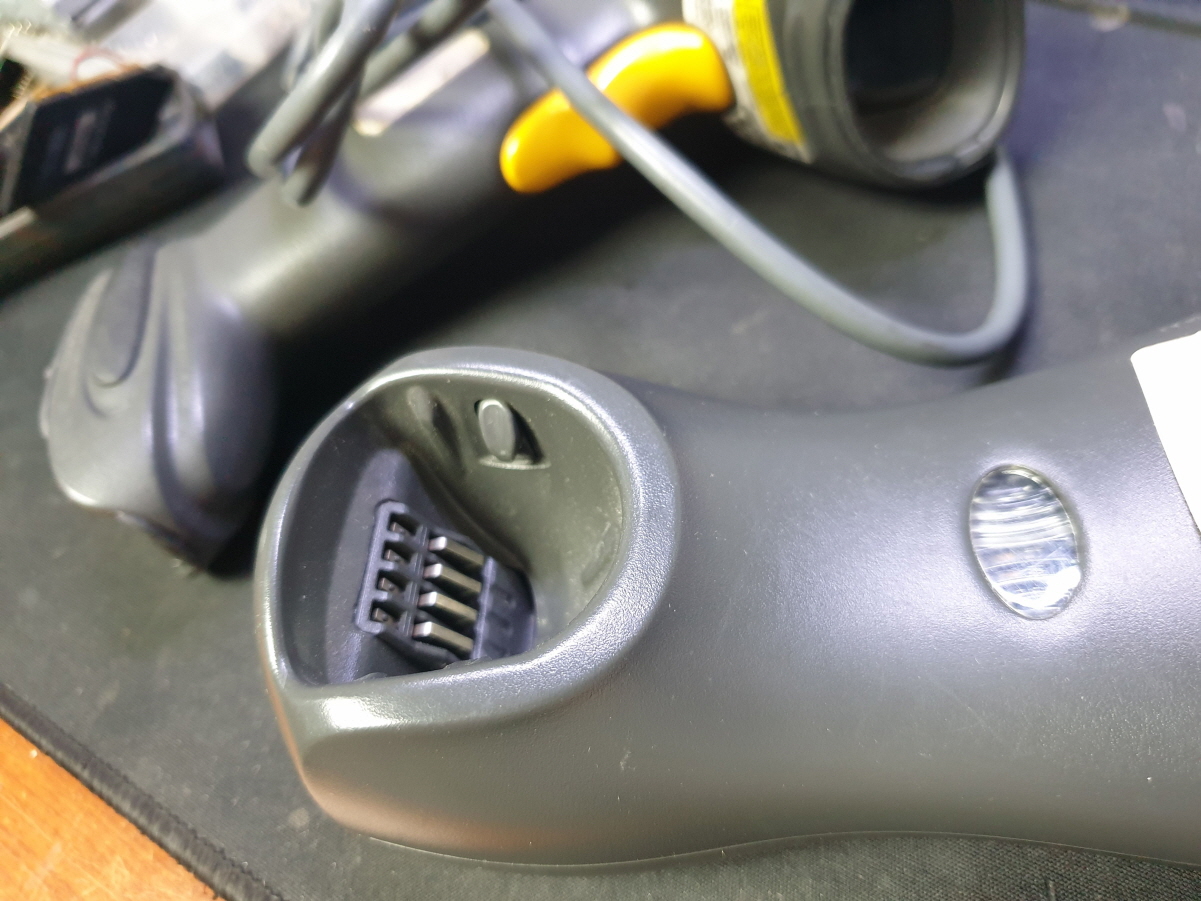 컴퓨터 연결시 아무런 반응이 없는 문제로 수리 진행합니다. 크래들(거치대)를 컴퓨터에 꽂으면 녹색불이 들어오며 스캐너 거치시 스캐너 충전이 진행되는 녹색 점멸이 느리게 혹은 빠르게 점멸되는 경우가 정상적인 상태입니다.