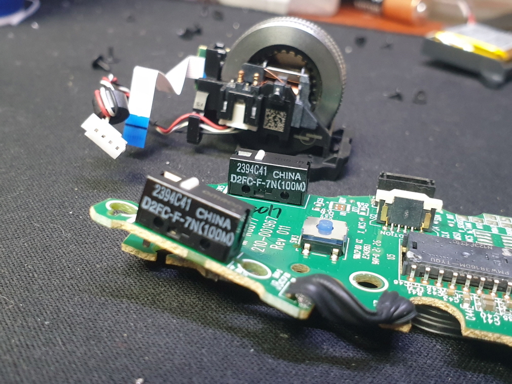 ㅣ기본 좌우버튼(스위치) : D2FC-F-7N(100M) 새 스위치로 교체됨.