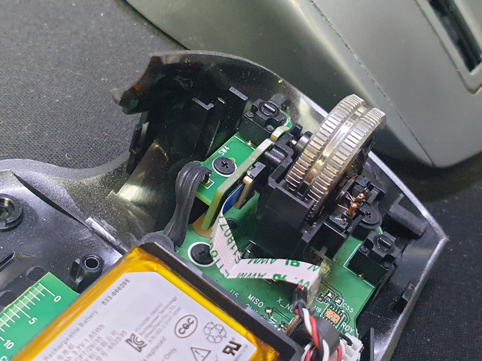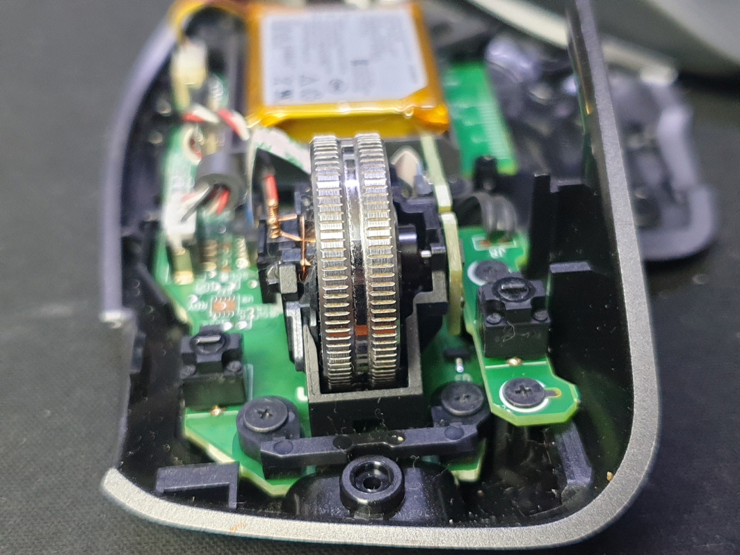 왼쪽버튼 잘 안눌리며 드래그안되는 문제인 버튼내 스위치불량으로 새 스위치 카일 저소음옐로우스위치 좌우교체 수리 진행합니다.
