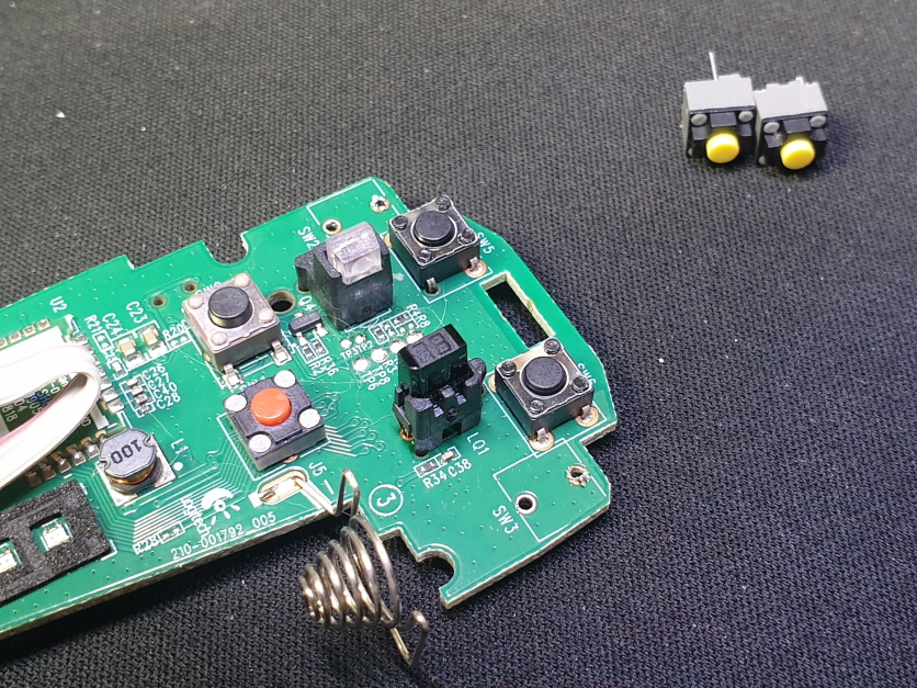 버튼내 스위치불량으로 새 스위치 카일 저소음옐로우스위치 좌우교체 수리 진행합니다.