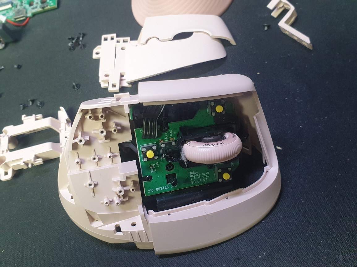 휠센서불량으로 휠센서교체수리 진행합니다. 휠센서불량은 휠팅김, 스크롤시 위아래로 잘 안움직이거나 아예 반응이 없는 경우 발생되는 현상이며 센서교체후 정상적인 사용이 가능합니다.