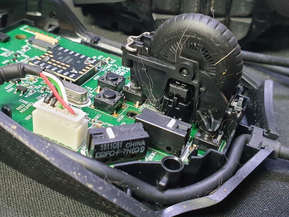휠센서불량으로 휠센서교체수리 진행합니다. 휠센서불량은 휠팅김, 스크롤시 위아래로 잘 안움직이거나 아예 반응이 없는 경우 발생되는 현상이며 센서교체후 정상적인 사용이 가능합니다.