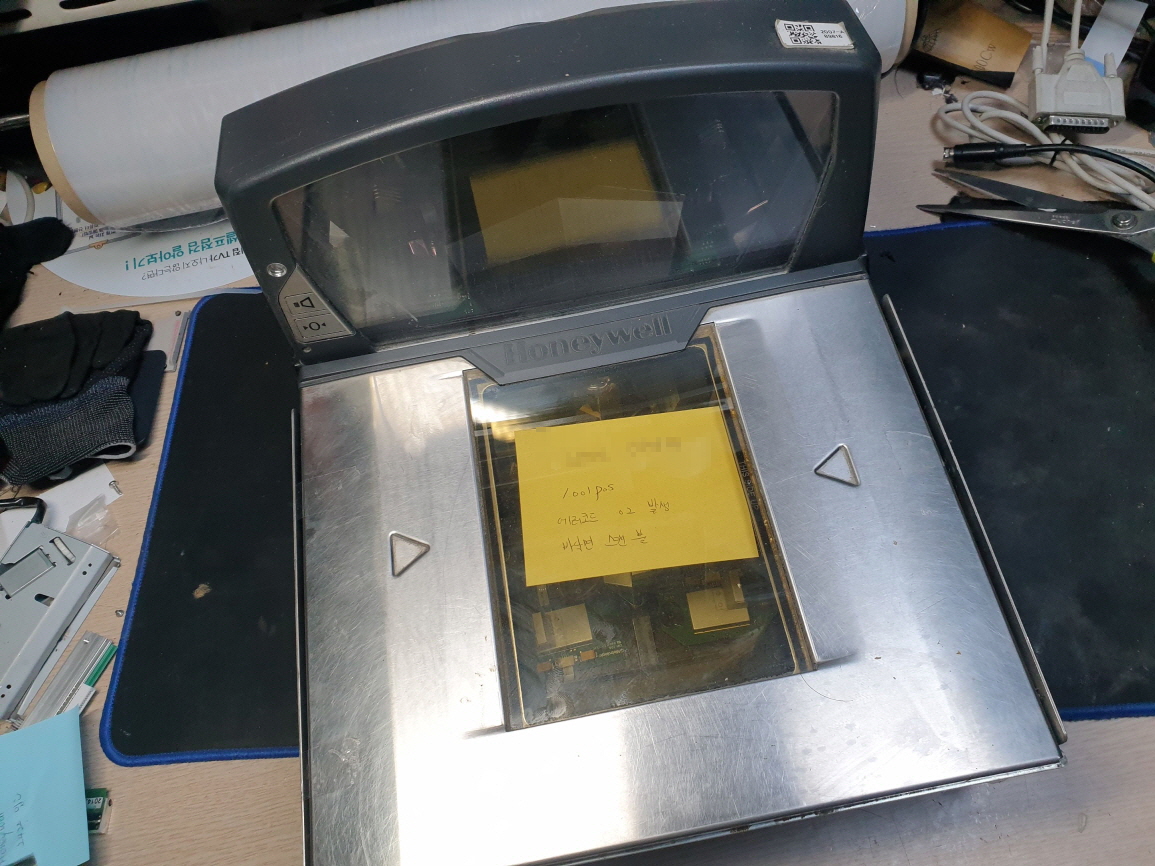 서울 영등포구에서 에러코드 02 스캔불안들어옴으로 honeywell MS2422 MS2431 마트 허니웰 매립형 평판 바코드 스캐너수리
