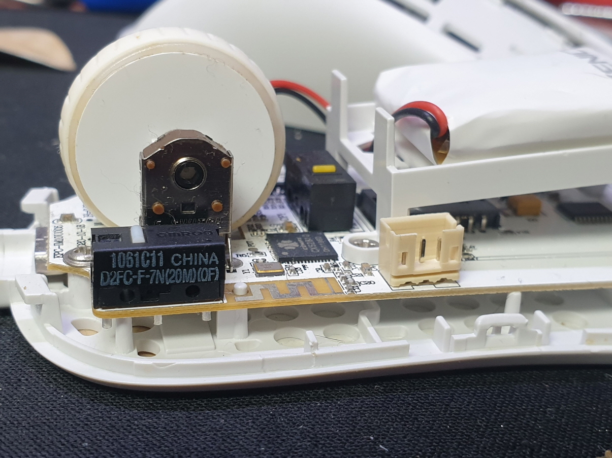 왼쪽버튼 더블클릭증상인 버튼내 스위치불량으로 새 스위치 D2FC-F-7N(100M) 좌우교체 수리 진행합니다. 추가로 앞으로가기 버튼 더블클릭으로 앞뒤스위치도 교체합니다.
