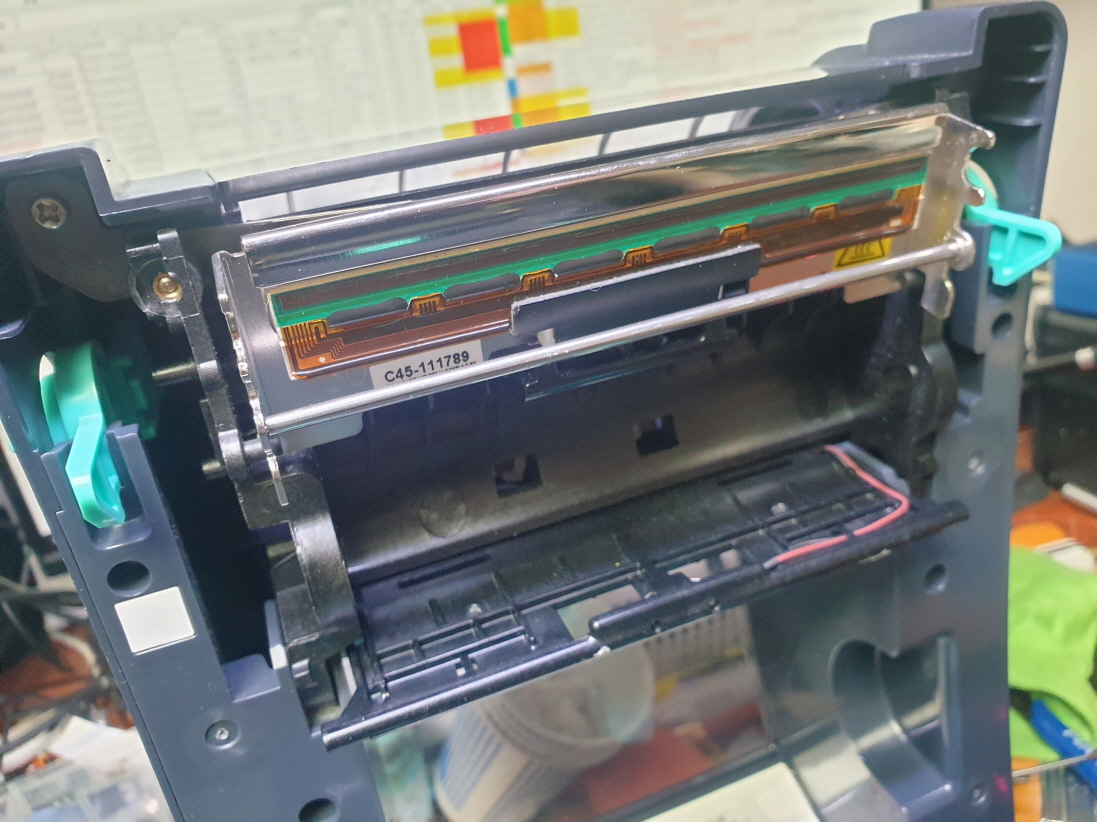 인쇄후 인쇄물이 흐리게 나오거나 일부 줄이가는듯이 인쇄되거나 바코드출력후 바코드인식이 안되거나 반만 인쇄되는 문제는 대부분 인쇄헤드 불량으로 헤드교체후 정상적인 사용이 가능합니다.