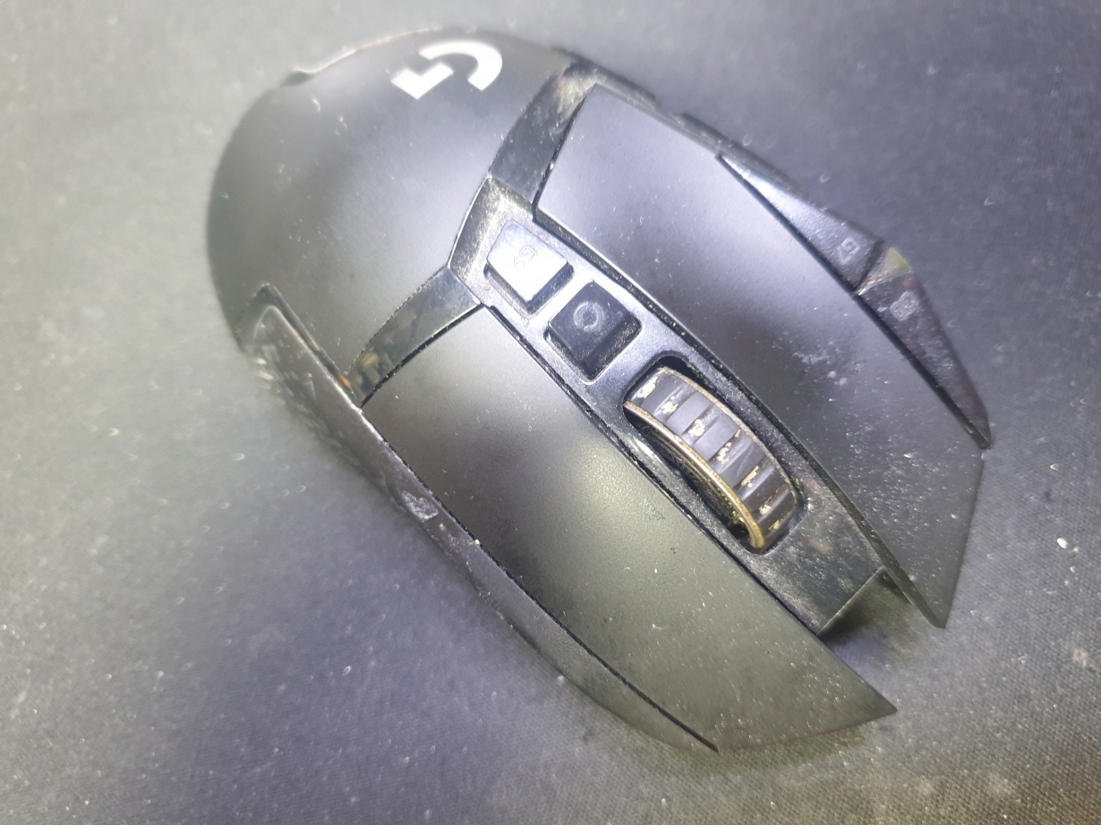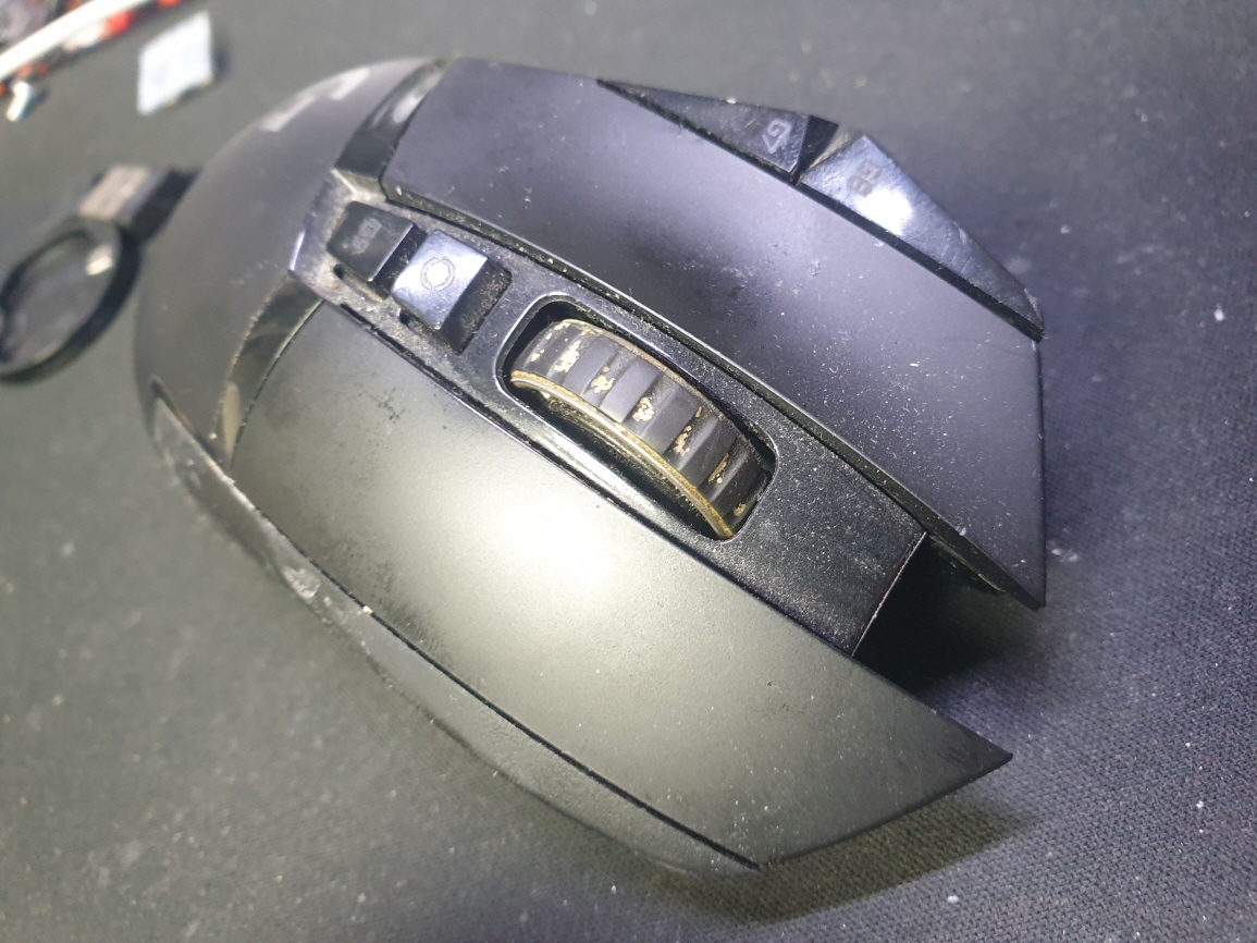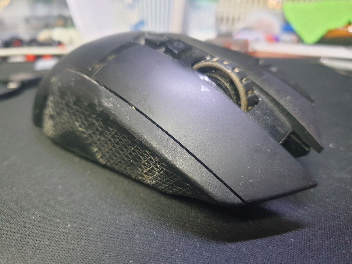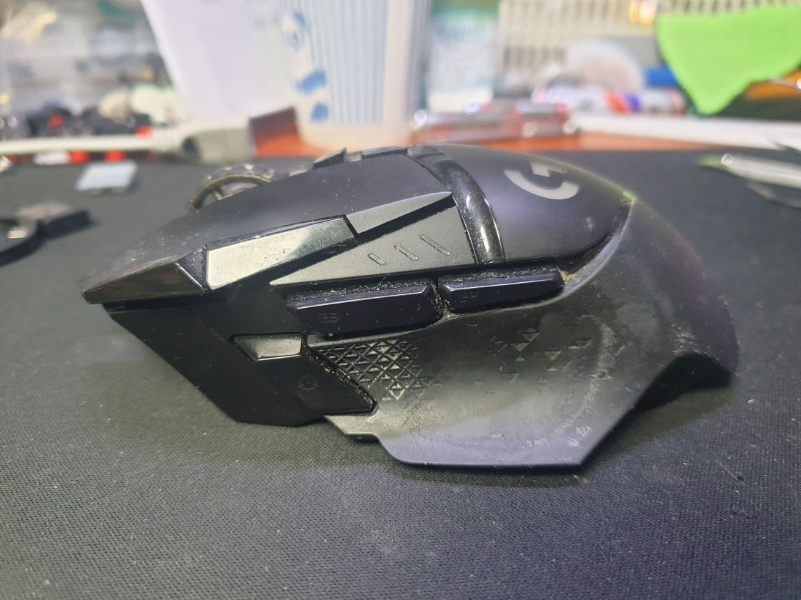 서울 양천구에서 왼쪽더블클릭증상으로 방문 입고된 Logitech G502 MR0076 로지텍 무선 마우스 사설 수리 AS