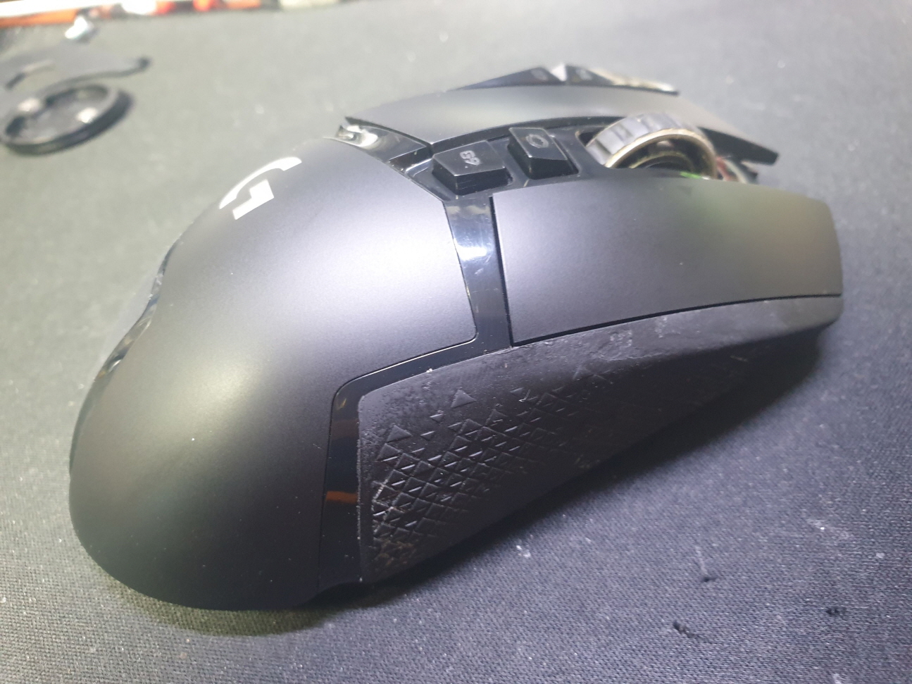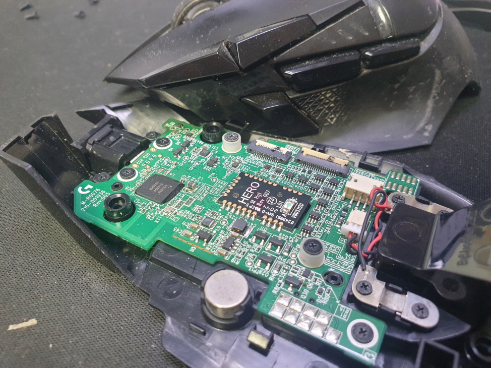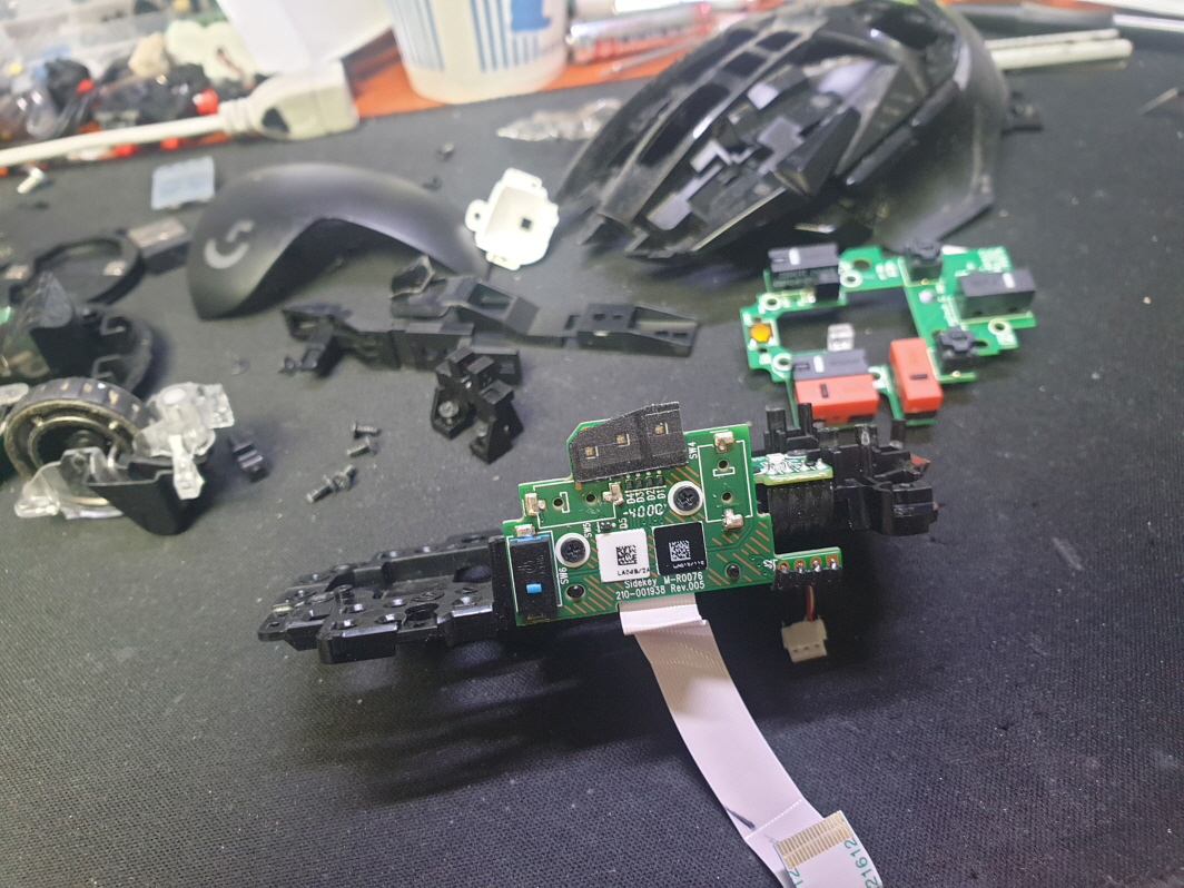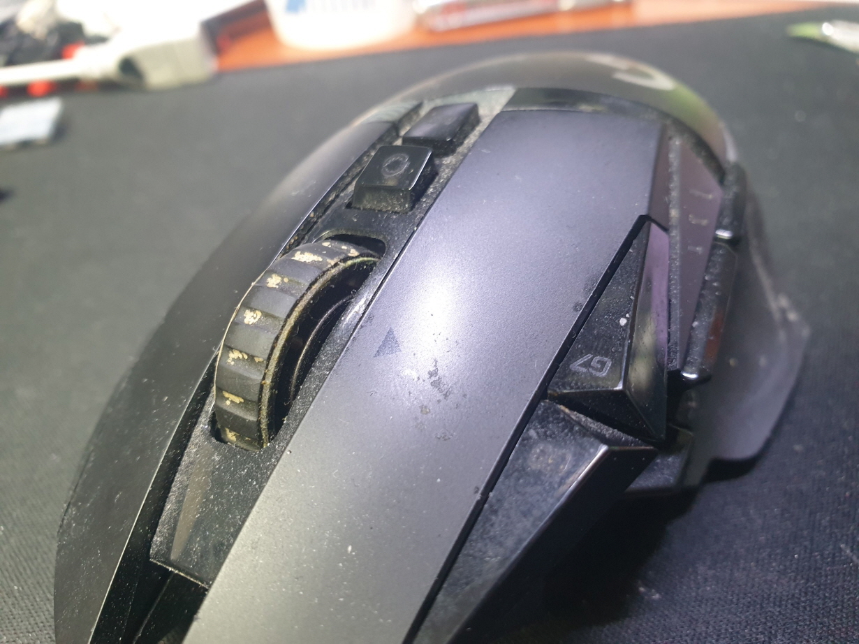 서울 양천구에서 왼쪽더블클릭증상으로 방문 입고된 Logitech G502 MR0076 로지텍 무선 마우스 사설 수리 AS