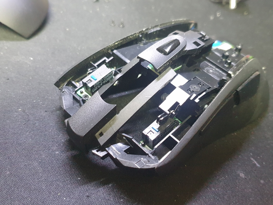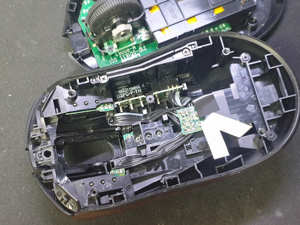 버튼내 스위치불량으로 새 스위치 D2FC-F-7N(100M) 좌우교체 수리 진행합니다. 추가로 스크롤휠센서불량으로 휠센서 교체 진행합니다.