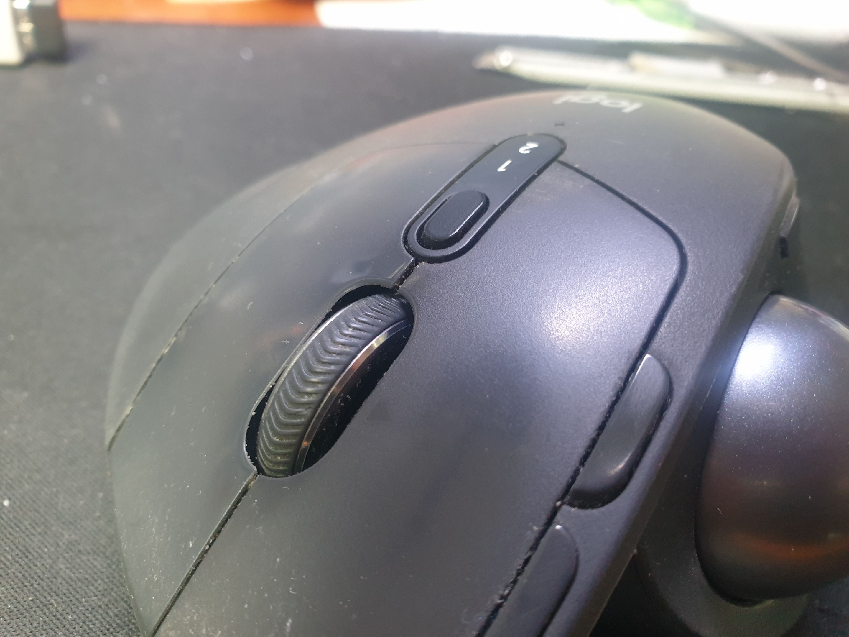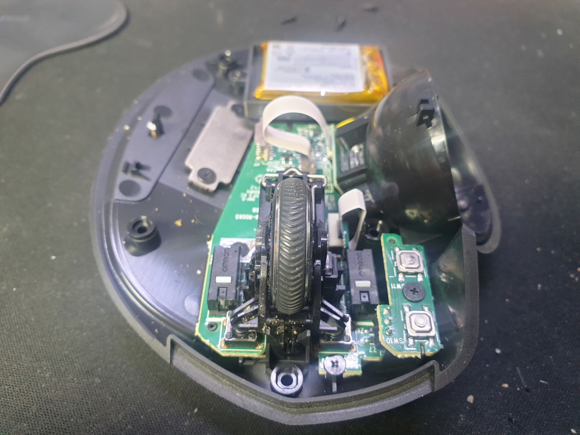 서울 양천구에서 카일 옐로우스위치로 교체요청으로 방문 입고된 Logitech MX ERGO 에르고 M-R0065 로지텍 에르고 블루투스 무선 마우스 사설 수리 AS