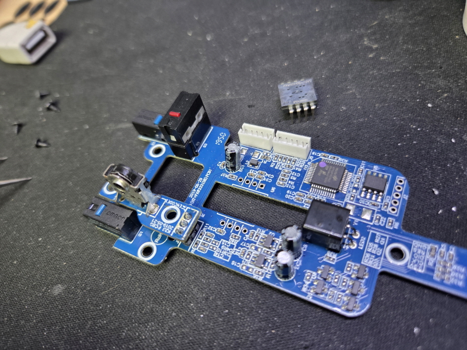마우스포인트 떨림증상 DPI 변경시에도 떨리며 낮은 DPI 설정시 정상으로 광센선 불량 교체 수리 진행합니다.