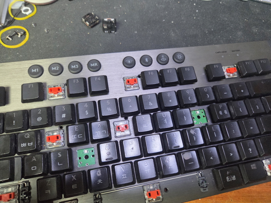 경기도 수원에서 키안눌림 키두번인식 중복입력으로 택배 입고된 Logitech G913 Y-R0069 로지텍 키보드 해외직구 사설 수리 고장 AS