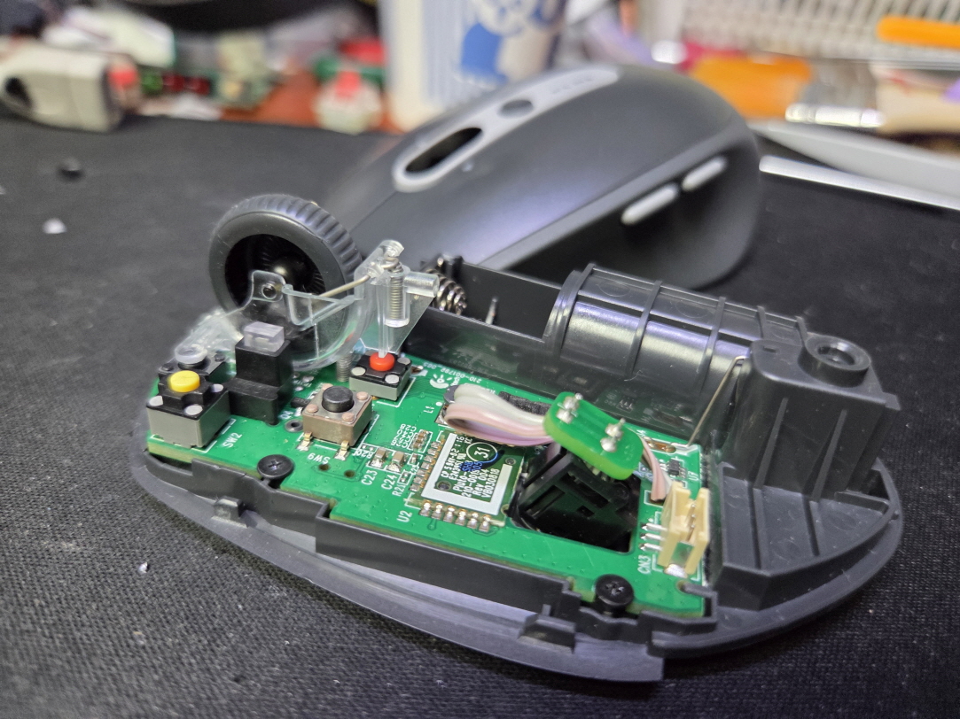 오른쪽버튼 간헐적 안눌림 증상인 버튼내 스위치불량으로 새 스위치 카일 저소음 옐로우스위치 좌우교체 수리 진행합니다.