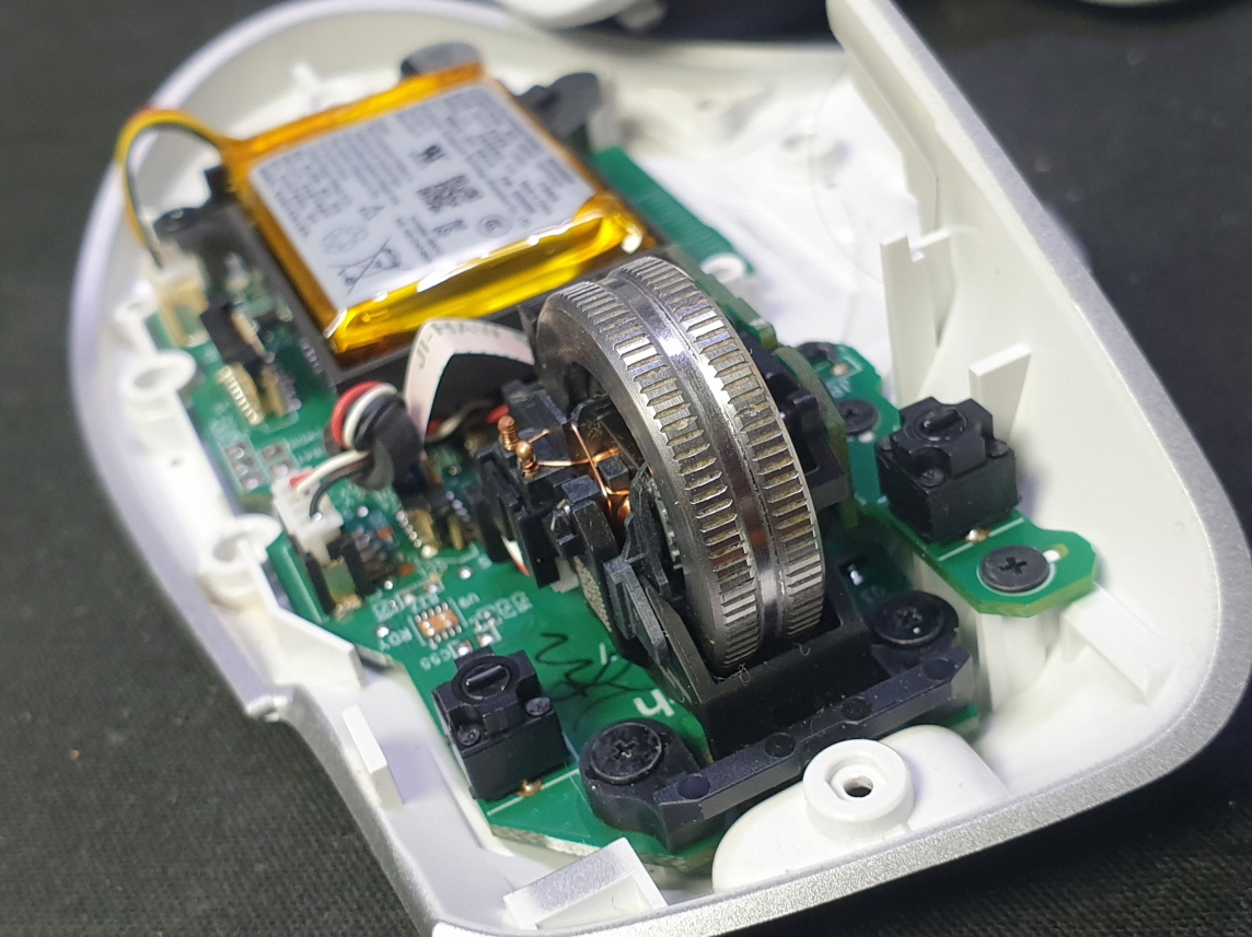 휠센서불량으로 휠센서교체수리 진행합니다. 휠센서불량은 휠팅김, 스크롤시 위아래로 잘 안움직이거나 아예 반응이 없는 경우 발생되는 현상이며 센서교체후 정상적인 사용이 가능합니다.