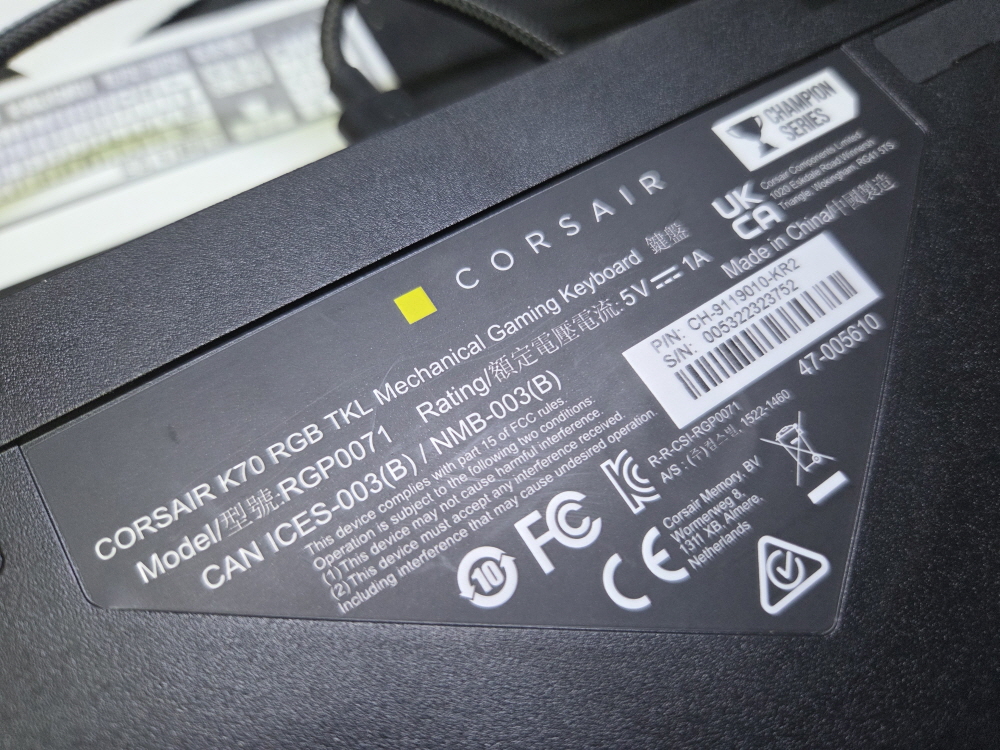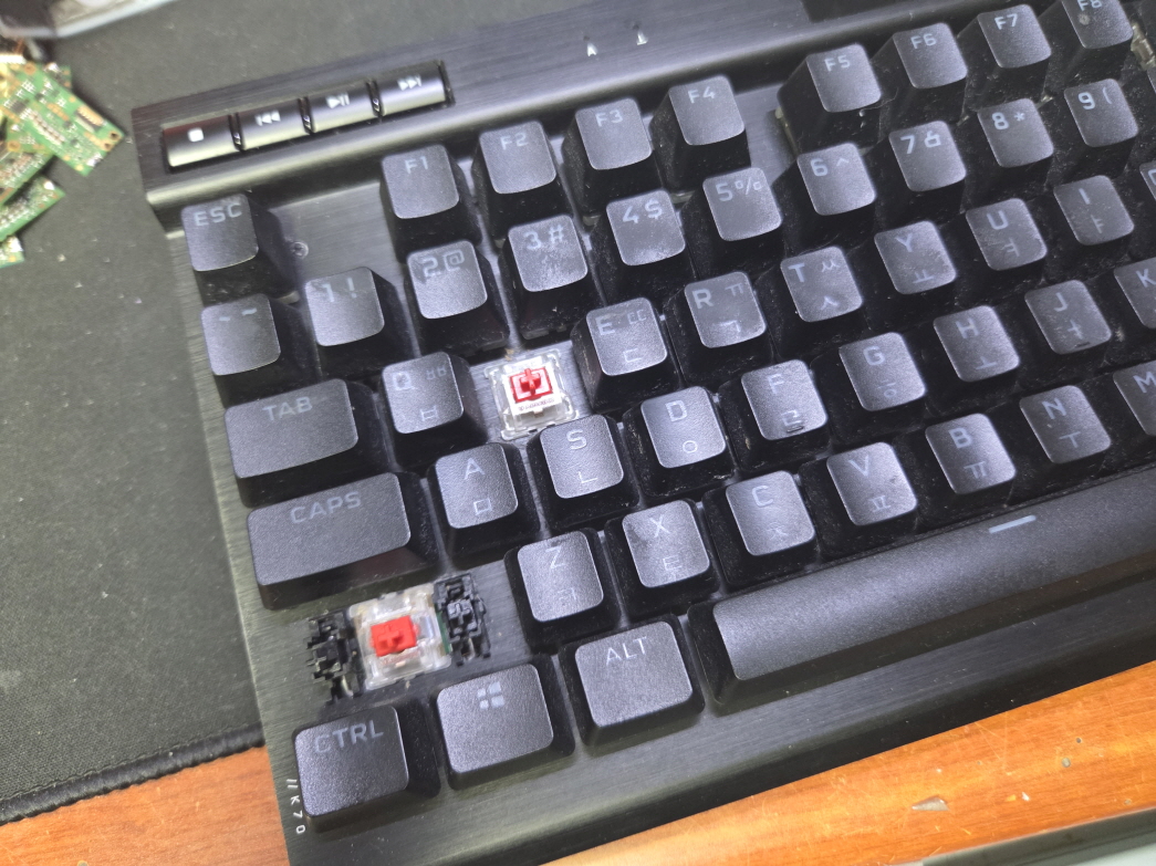 인천 남동구에서 키보드버튼2개안눌림으로 택배입고된 Corsair K70 RGB TKL RGP0071 커세어키보드 해외직구 사설 수리 고장 AS
