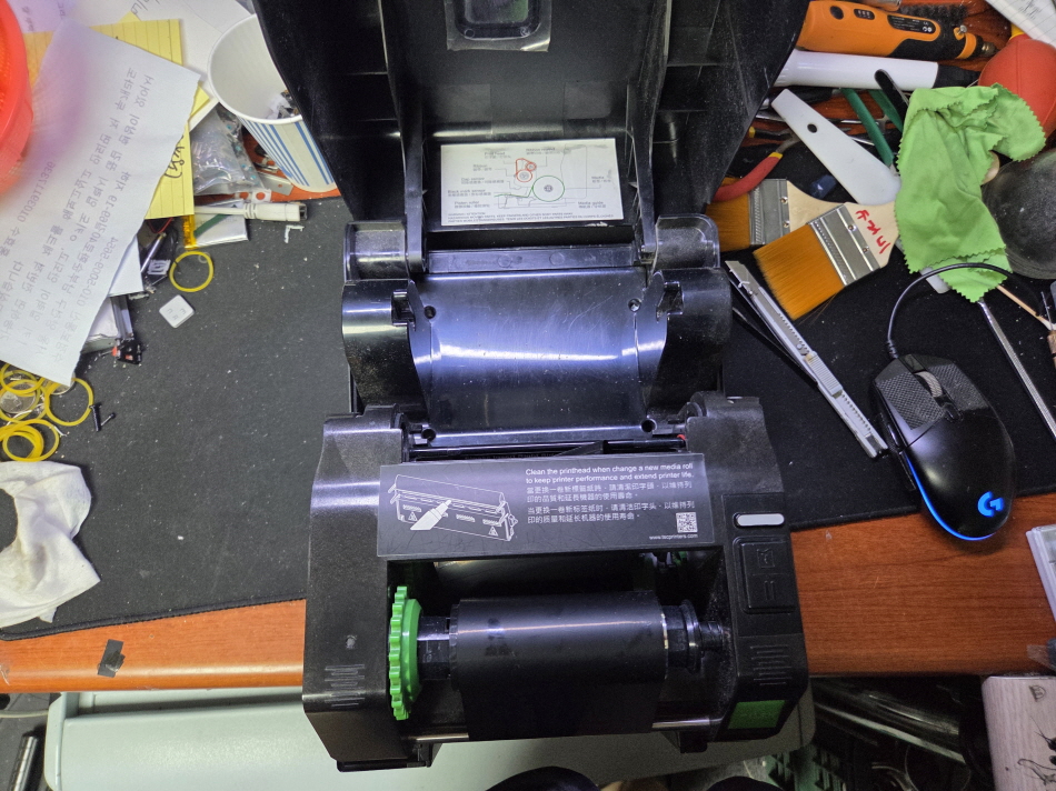 광주 광산구에서 용지잡는부분(초록색)깨짐으로 TSC TE210 유통 라벨 송장 바코드 프린터수리