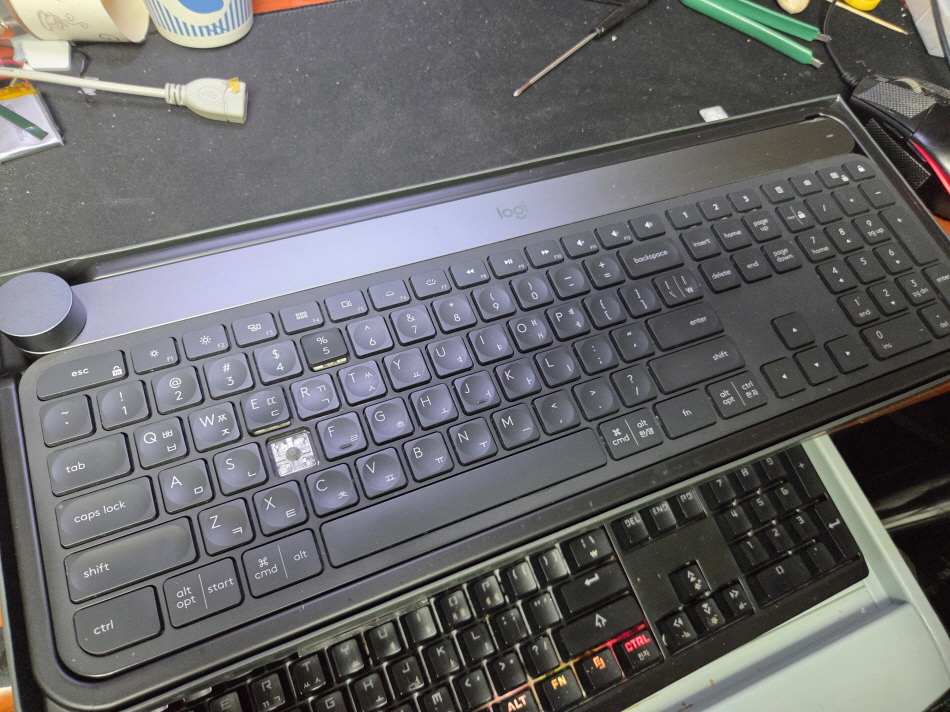 경기도 김포에서 키 떨어짐 힌지가 붙질않음으로 택배 입고된 Logitech CRAFT 로지텍키보드 펜타그래프 병행수입 직구 사설 수리 고장 AS