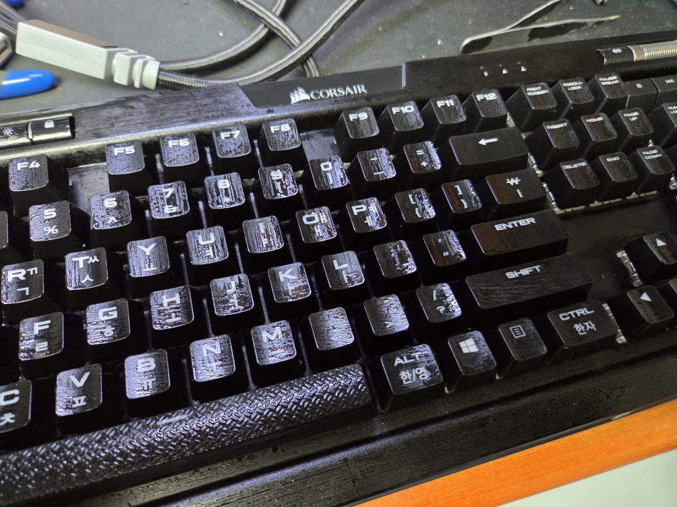 경기도 안양에서 우측상단볼륨조절 다이얼 작동불량으로 택배입고된 Corsair K70 RGB MK.2 RGP0057 커세어키보드 해외직구 사설 수리 고장 AS